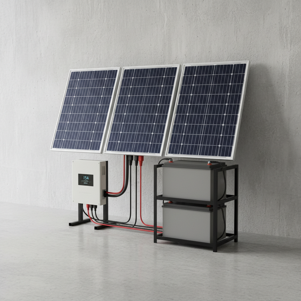 Complete 15A PV system package — panels, inverter, DC/AC cabling, and battery bank. Excludes workmanship and mounting structure.